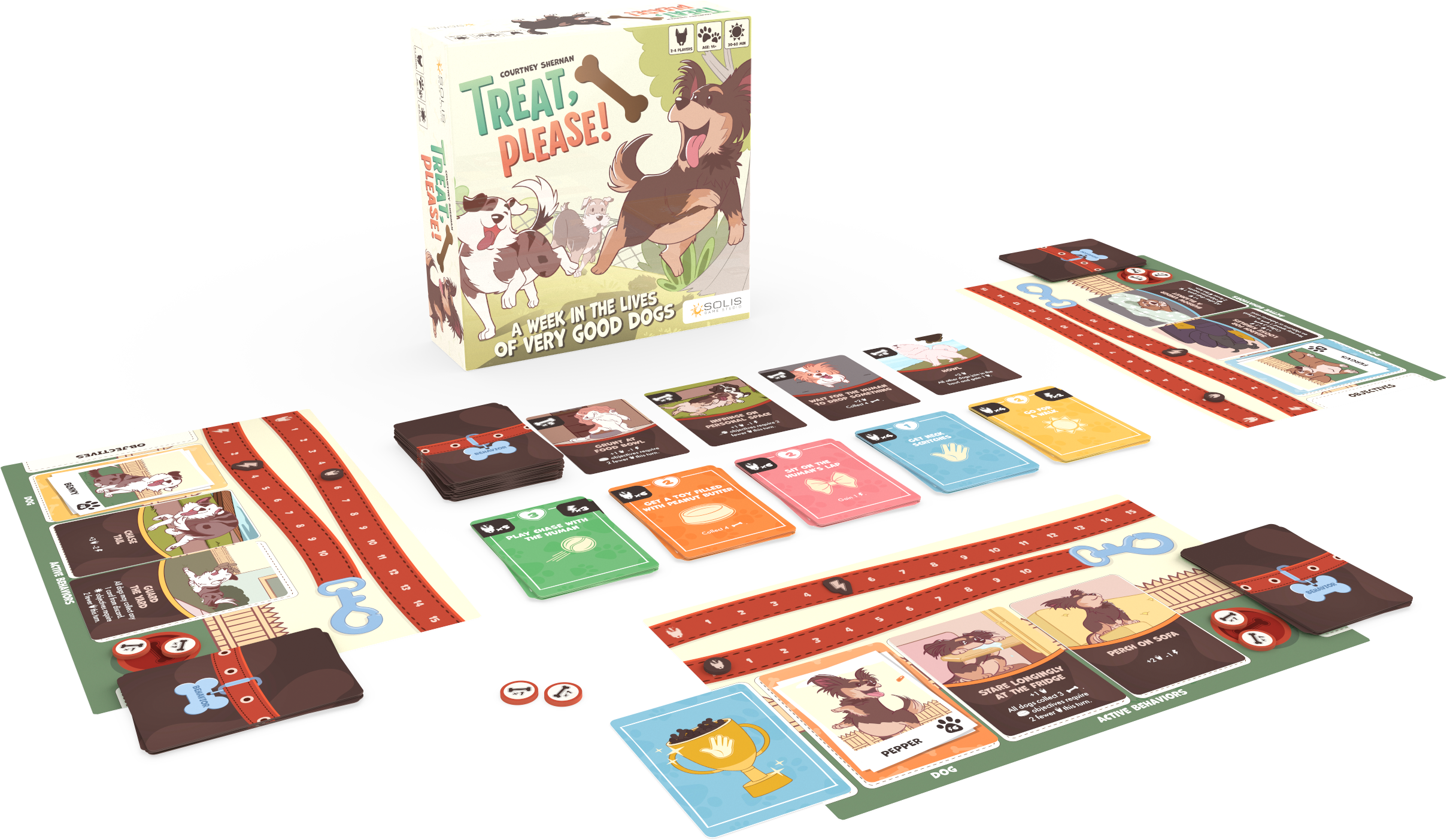 Treat, Please! is designed for 2–4 players, ages 10+, with no complicated rules and fast setup. Jump right into the fun and wag your way to victory!